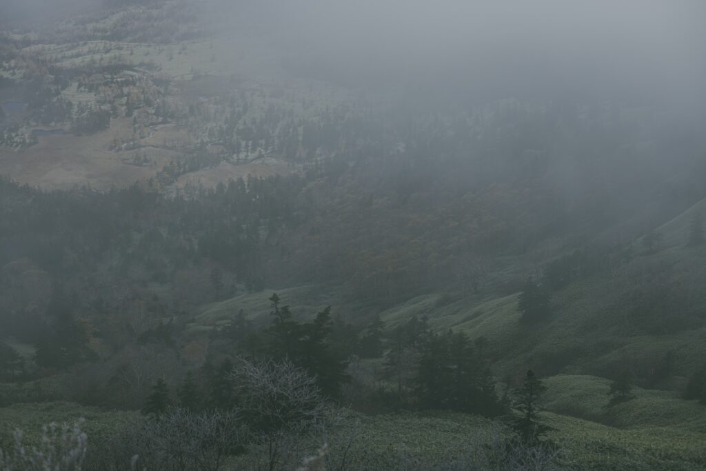 志賀高原まで紅葉狩りへ。横手山の日本国道最高地点には9時過ぎくらいに到着したんですが、外気温は0℃、、、前日の雨と寒さで雨氷が見れましたよ。幻想的な風景だったなぁ。