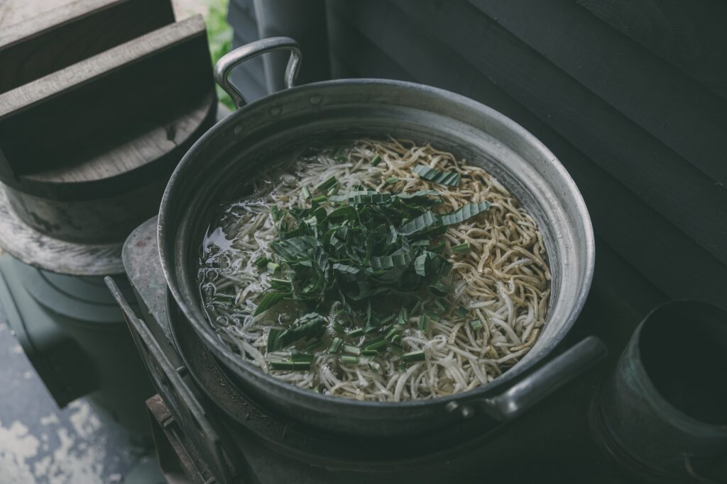 釜炊きご飯と切り干し大根の味噌汁。