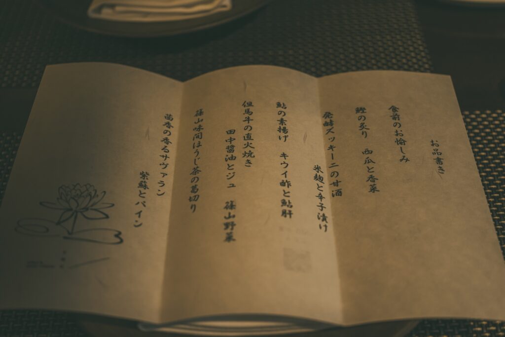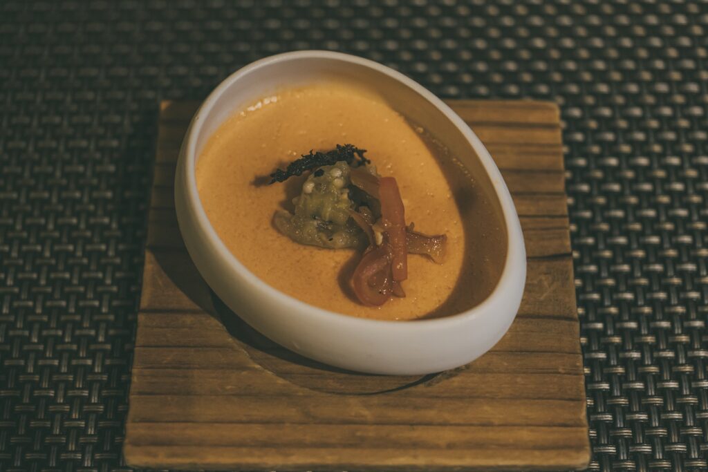 創作の和風フレンチ料理のコース。