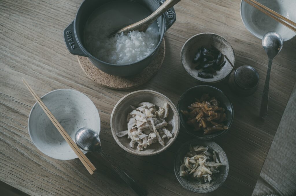 朝食は中華粥。