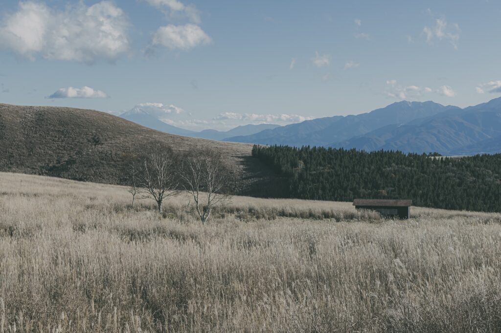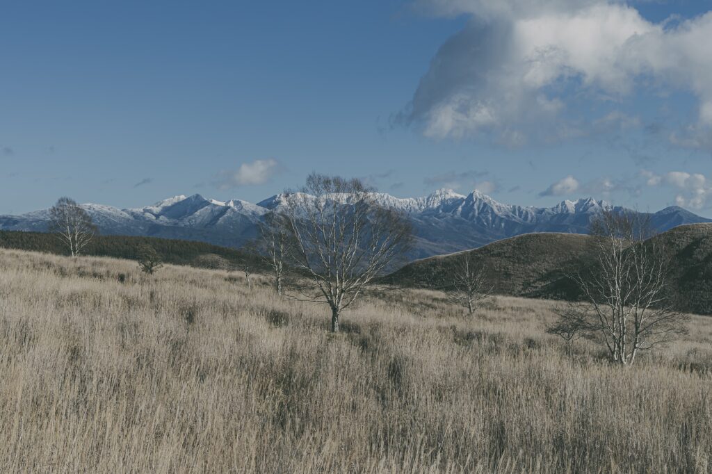 ススキと枯木。冬の風景。