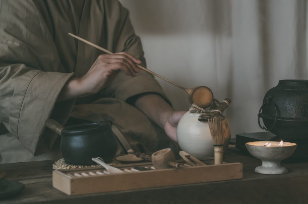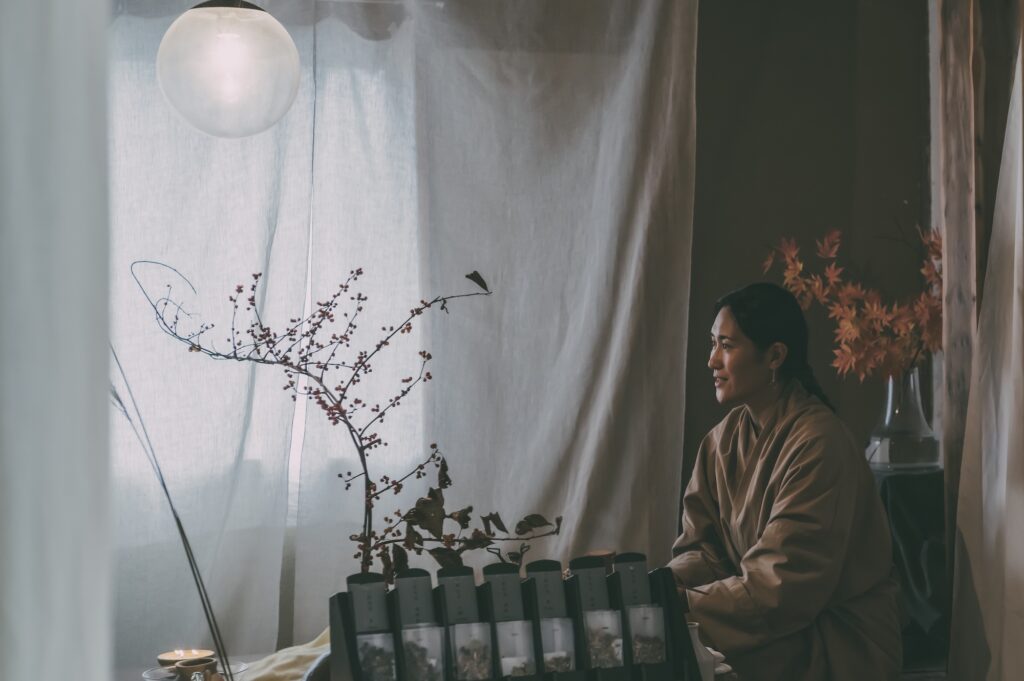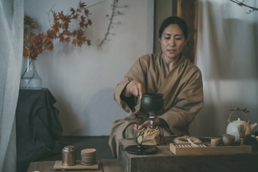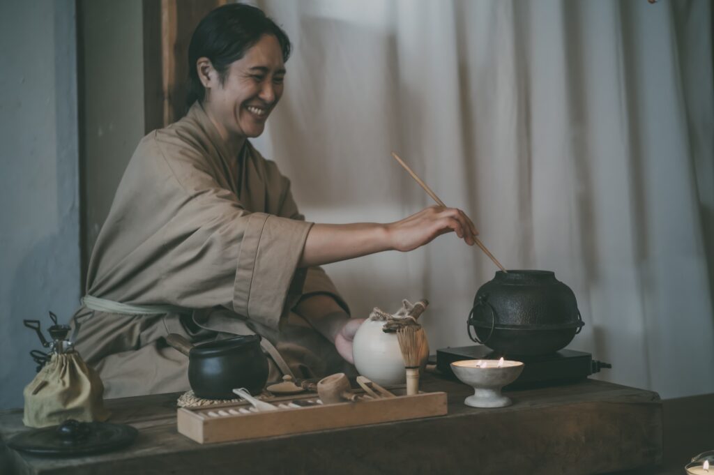 ヨシカさんの野香茶と露月さんの栗羊羹。