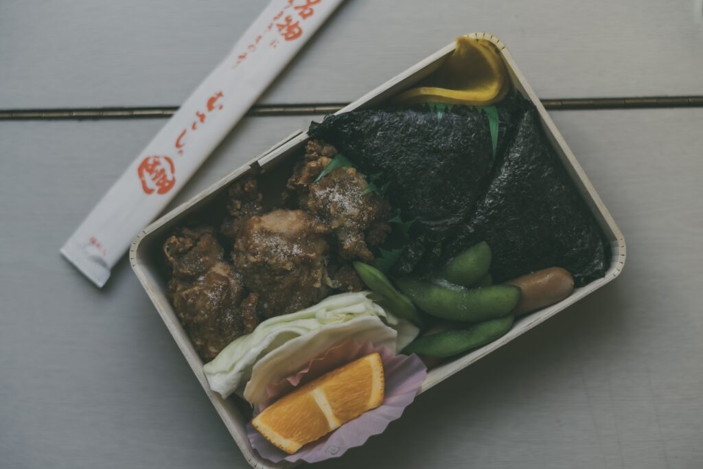 朝食はむさしのおにぎり弁当。こんな朝食もありですね。