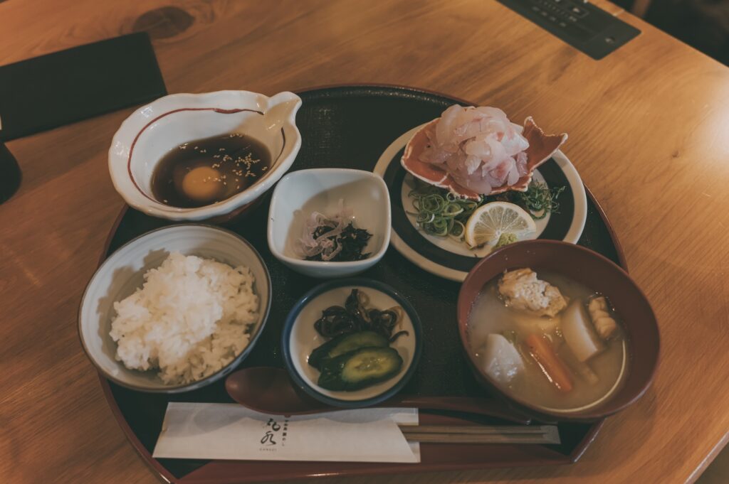 鯛めしの定食を食べるために寄り道。