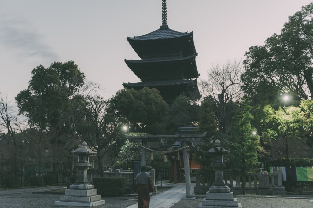 朝、東寺を参拝。京都のお寺は規模が大きく厳かですね。